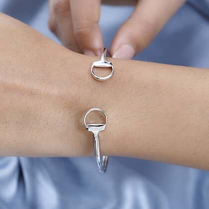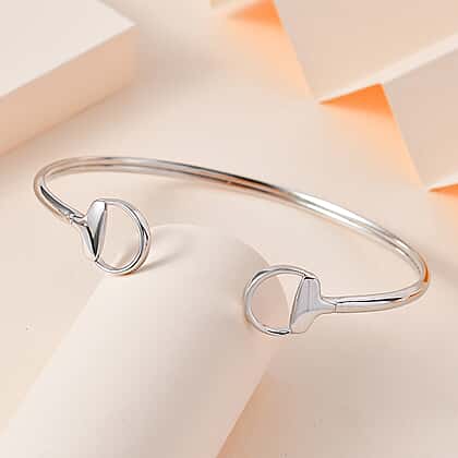 Platinum Overlay Sterling Silver Cuff Bangle, Silver Wt. 7 Gms