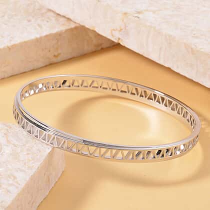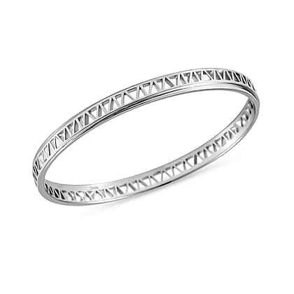 RACHEL GALLEY Geo Traingle Collection - Rhodium Overlay Sterling Silver Bangle (Size - 7.5) silver wt. 17gms