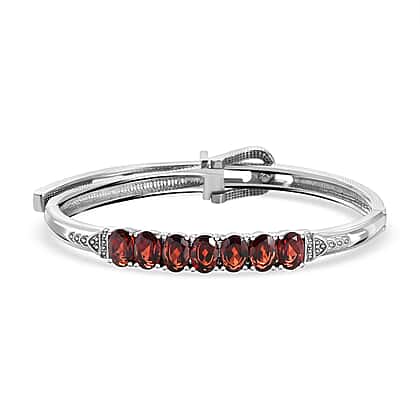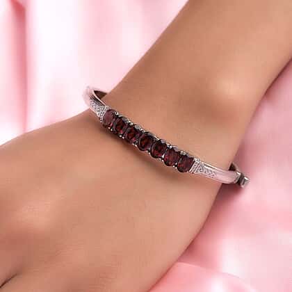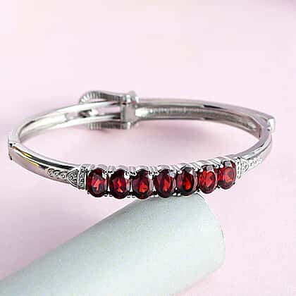 Red Garnet Adjustable Buckle Bangle (Size - 6.5 ) in Stainless Steel 6.67 Ct