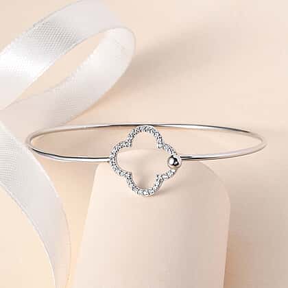 Rhode Island CloseOut- Cubic Zirconia Bangle (Size - 7.5) in Sterling Silver