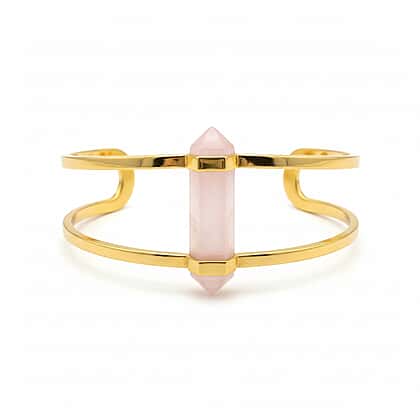 Soft colour tells a personal story, and this rose quartz cuff bangle does it beautifully. This enchanting cuff bangle features rose quartz, highly valued for its gentle blush tone. The polished gemstones offer a smooth glow and are robust enough to resist everyday scratches. Designed as an adjustable size 7 cuff, it slips on with ease and sits comfortably all day. Crafted in a durable base with hypoallergenic yellow gold plating, the piece resists tarnish and suits sensitive skin. With open sides and a clean silhouette, this piece feels nurturing yet confident, perfect for women choosing jewellery that reflects warmth and self‑connection.