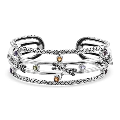 Royal Bali Collection 2.82 Carat Multi Gemstone Cuff Bangle in Sterling Silver Wt 42.8 Gms