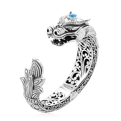 Royal Bali Collection 0.87 Ct. Sleeping Beauty Turquoise Regal Dragon Bangle in Sterling Silver 7.5 Inches
