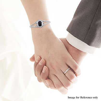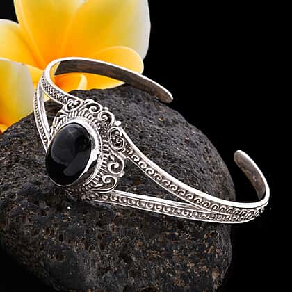 Royal Bali Collection Black Jade Cuff Bangle in Sterling Silver 7.5 Inch