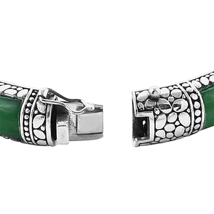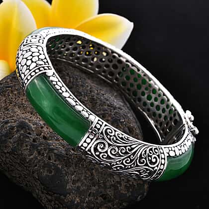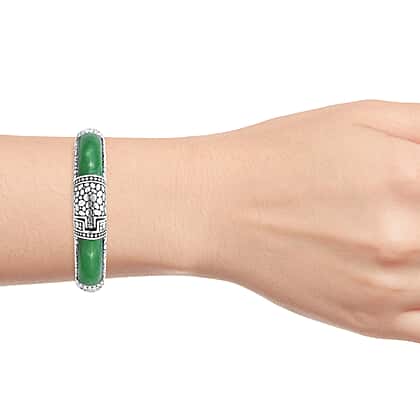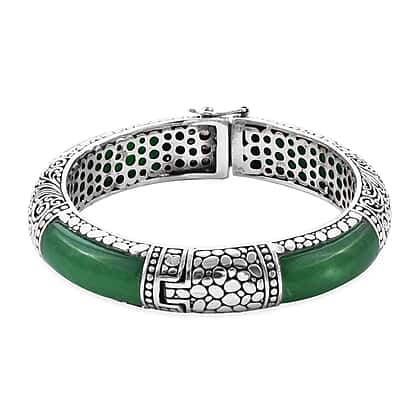Royal Bali Collection 98 Ct Green Jade Ethenic Bangle in Sterling Silver 54 Grams 7.25 Inch