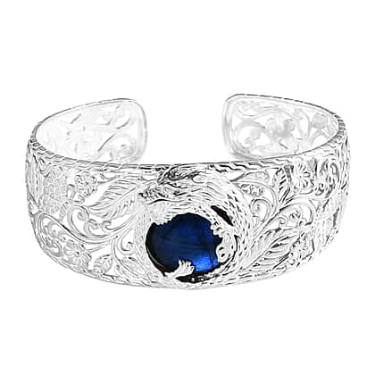Royal Bali Collection Labradorite Dragon Cuff Bangle (Size - 6.5 to 9.0) in Sterling Silver 25.27 Ct.