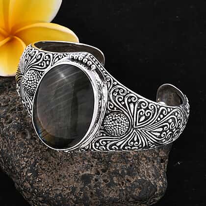 Royal Bali 97.58 Ct Labradorite Cuff Bangle in Silver 44.03 grams 7.25 Inch