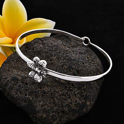 Royal Bali Collection - Sterling Silver Bee Bangle (Size 7.5), Silver wt 12.15 Gms