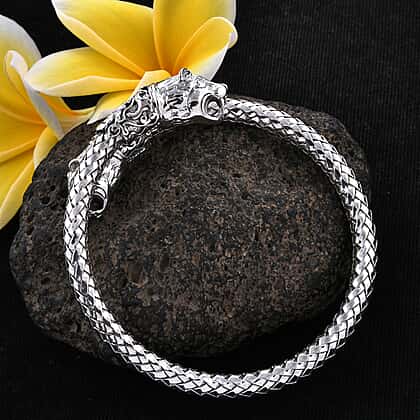 Royal Bali Tiger Head Cuff Bangle in Silver 50.62 Grams 7.5 Inch