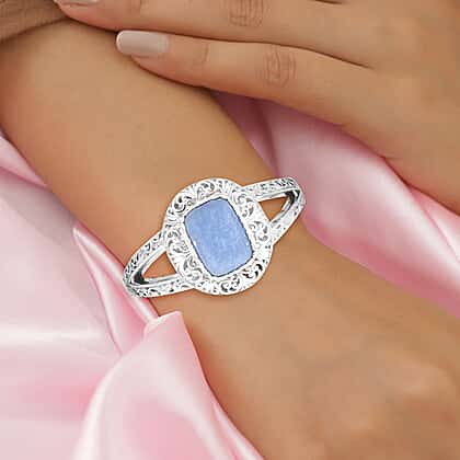 • STONE DETAILS: Bezel setting attaches the cushion cabochon cut Blue Opal onto this bangle