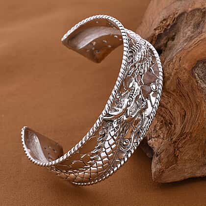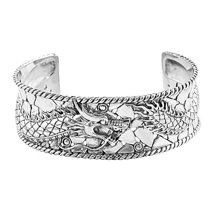Royal Bali Majapahit Collection- Sterling Silver Dragon Cuff Bangle (Size - 7.5), Silver Wt. 33.75 Gms