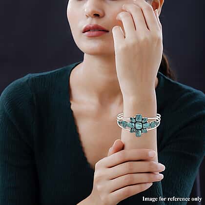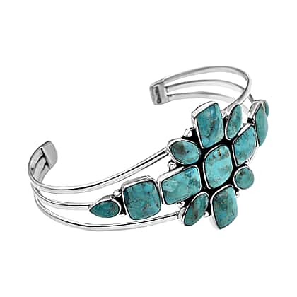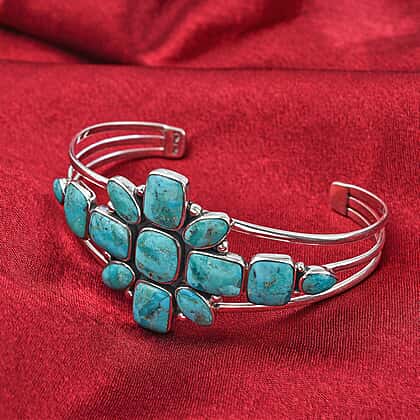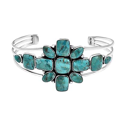Santa Fe Collection - Kingman Turquoise Cuff Bangle (Size 6.5) in Sterling Silver 15.00 Ct, Silver Wt. 20.00 Gms
