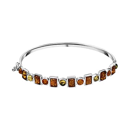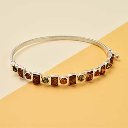 Shades Of Amber - Multi Amber Bangle (Size 7.5) in Sterling Silver, Silver Wt 10.14 GM