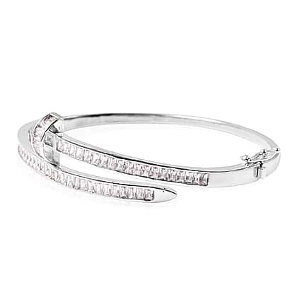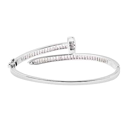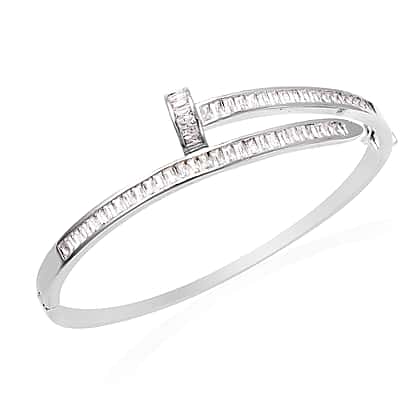 Simulated Diamond Nail Bangle (Size 7) in White Gold Tone