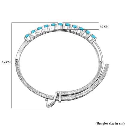 Sleeping Beauty Turquoise Bangle in Rhodium Overlay Sterling Silver 5.55 ct, Silver Wt. 21.2 Gms 5.550 Ct.