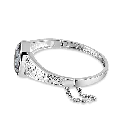 19.96 Ct. Snowflake Obsidian Bangle in Stainless Steel