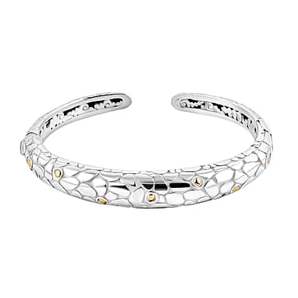 Sterling Silver Cuff Bangle (Size 8) in 18K Yellow Gold & Silver Plated