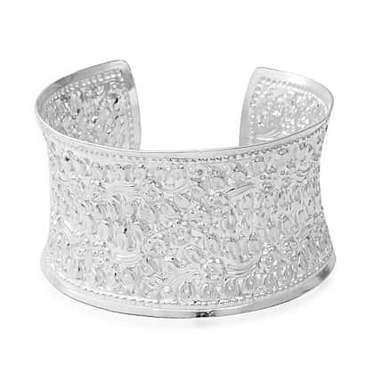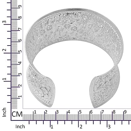 Sterling Silver Cuff Floral Bangle (Size 7 to 9 inch), Silver wt 49.57 Gms
