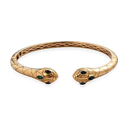 1.25 Ct AA Malachite Snake Cuff Bangle in Gold Plated Sterling Silver 7.5 Inch