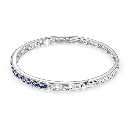 Tanzanite Openable Bangle (Size 7.5) in Rhodium Overlay Sterling Silver