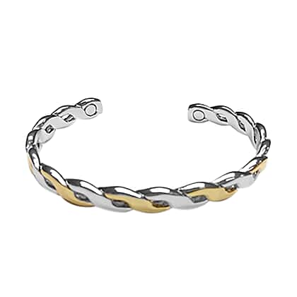 Twisted Adjustable Magnetic Cuff Bangle in Dual Tone 7 Inch