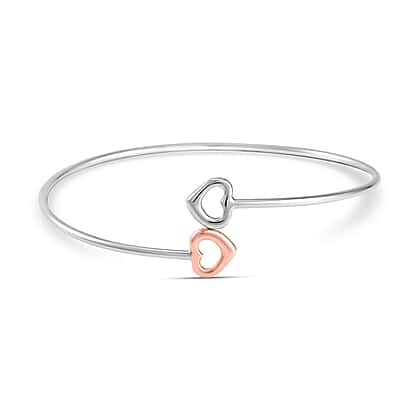 Two-Tone Plated Sterling Silver Double Open Heart Bangle (Size - 7.5), Silver Wt. 7.00 Gms
