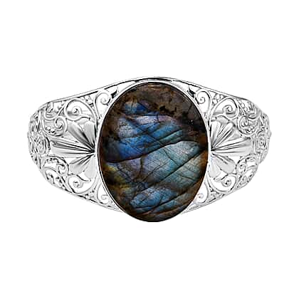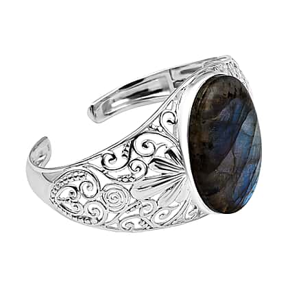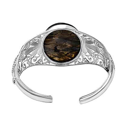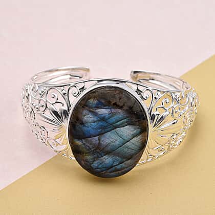76.79 Ct Rare Size Labradorite Cuff Bangle in Silver 35.25 Grams 7.5 Inch