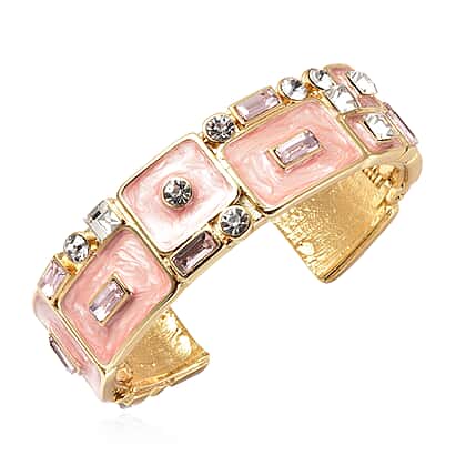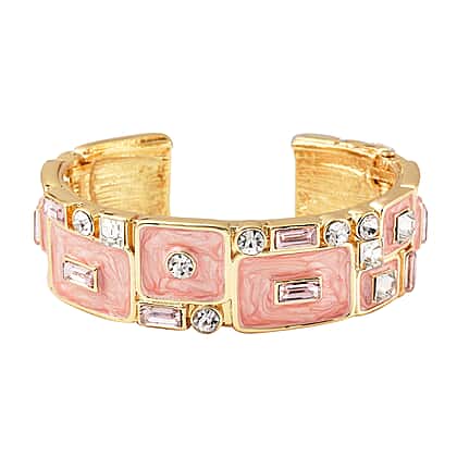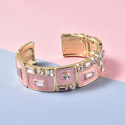 Pink and White Crystal Enamelled Bangle in Yellow Gold Tone