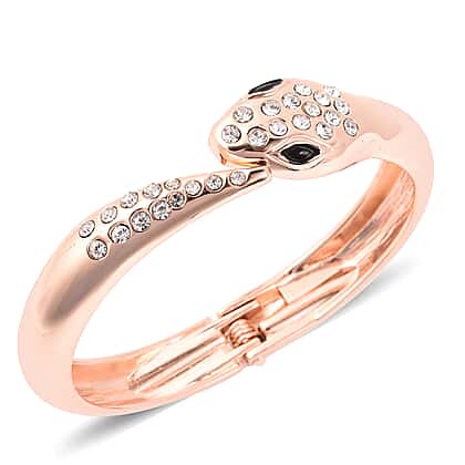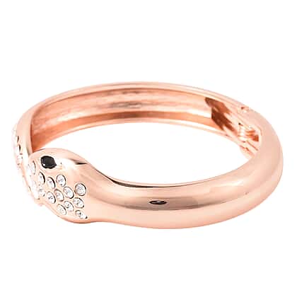 White Austrian Crystal Snake Head Enamelled Bangle in Rose Gold Tone 7 Inch