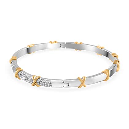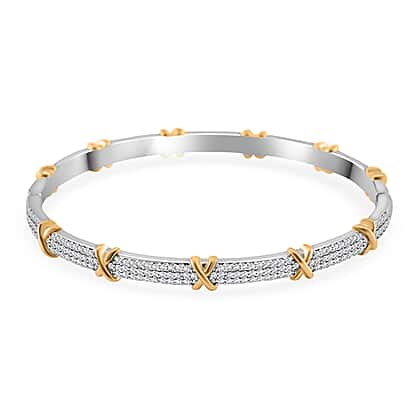 White Cubic Zirconia X Design Bangle (Size 7.5) in Two Tone Plated