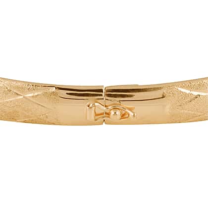 Yellow Gold Overlay Sterling Silver Diamond Cut Bangle (Size 7) with Clasp