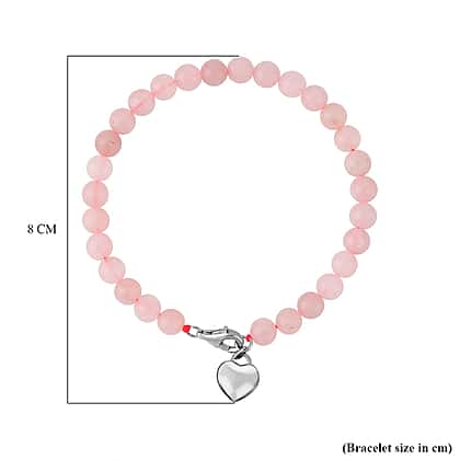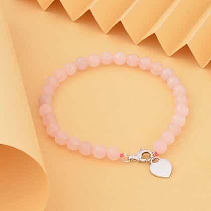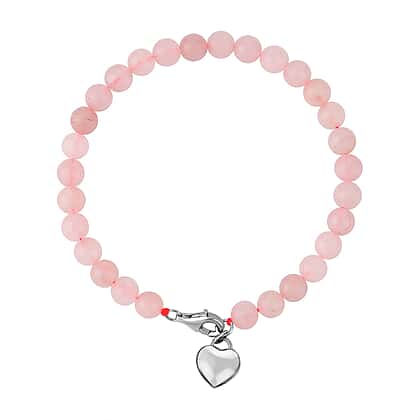 Rose Quartz Bracelet (Size - 7.5) with Lobster Clasp in Rhodium Overlay Sterling Silver
