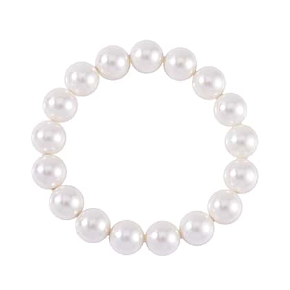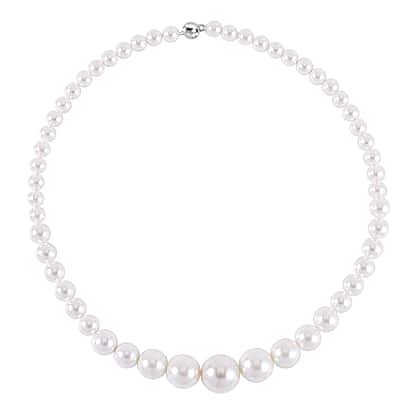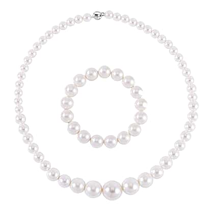 White Shell Pearl Stretchable Bracelet (Size 7-7.5) and Necklace (Size - 20) Pure White Stainless Steel 0.01 ct