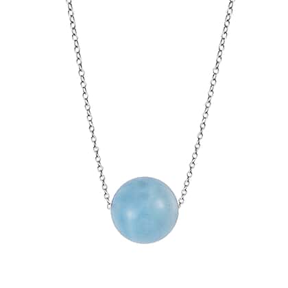 Aquamarine Beads Necklace (Size 18) with Spring Ring Clasp in Rhodium Overlay Sterling Silver 15.20 Ct.