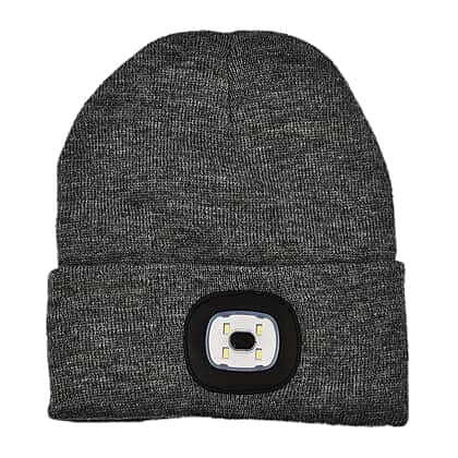 Beanie Hat with Rechargeable Head Torch - Grey