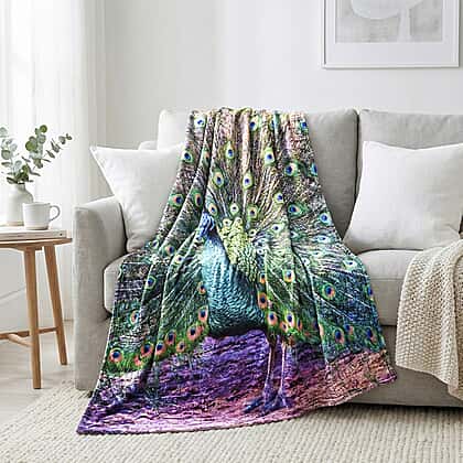 Digital printed flannel blanket with peacock pattern