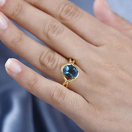 Crafted with a Belgian Teal Fluorite of impeccable clarity, this Solitaire Ring looks gorgeous in 18K Yellow Gold Vermeil over Sterling Silver. The combination of the yellow base and blue gemstone creates a sizzling chemistry of aesthetics and vivid hues. The ring solitaire gemstone has an oval shape highlighted by a prong setting.