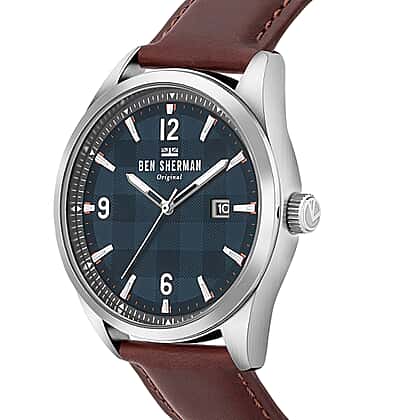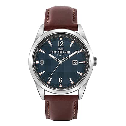 Ben Sherman Carnaby Check Navy Dial Mens Watch with Light Brown Leather Strap