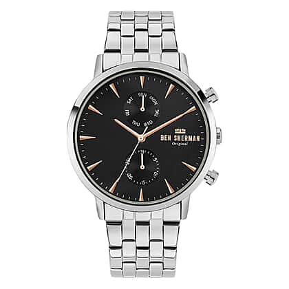 Ben Sherman Portobello Professional Let Black Multi Dial Mens Watch with Silver Chain Strap