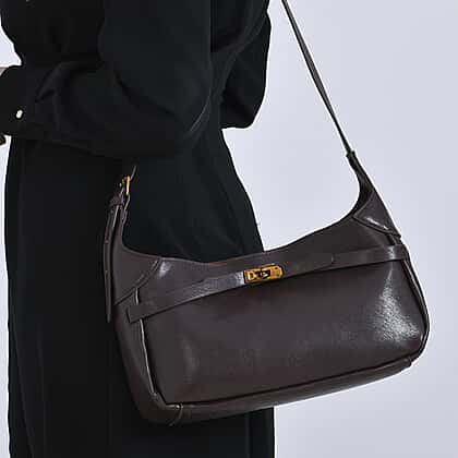 Step into understated sophistication with this coffee-toned hobo bag, perfect for adding warmth and polish to your outfit. Constructed from durable leatherette that mirrors the beauty of real leather, it’s finished with a front-lock detail for added charm. The interior, lined with smooth polyester, houses a removable pouch for added convenience. With an adjustable 108cm strap, this 30x16x8cm bag adapts seamlessly to your day—whether you're at the office, running errands, or heading out for dinner.