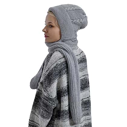 Winters Must Buy - Solid Beanie Cozy Cap and Scarf Set - Grey