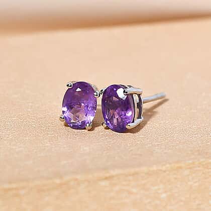 1.5 CT. African Amethyst Solitaire Earrings in Platinum Plated Sterling Silver
