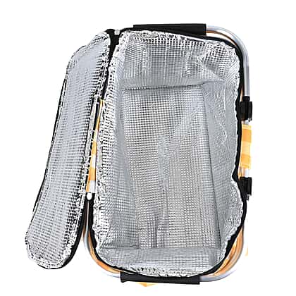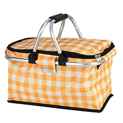 18L Collapsible Picnic Bag with Check Pattern - Yellow