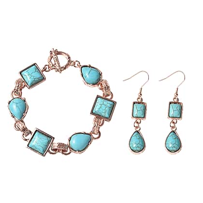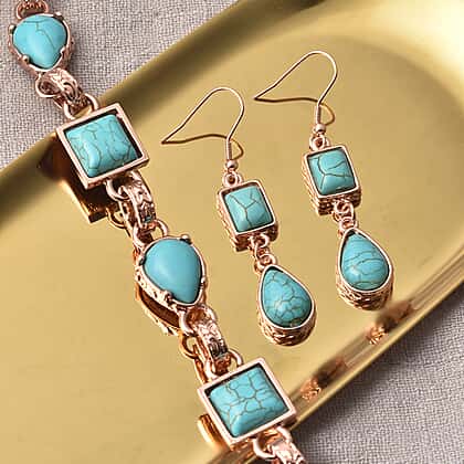 2 Piece Set - Blue Howlite Station Bracelet (Size 8.5) and Earrings in Rose Gold Tone 15.00 Ct.