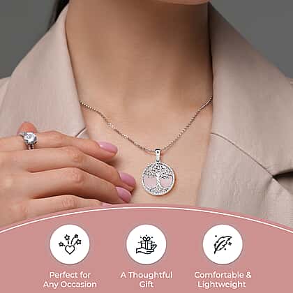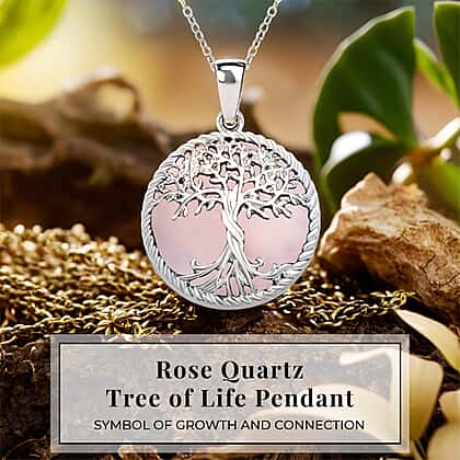 Rose Quartz Tree of Life Pendant with Chain (Size 20)