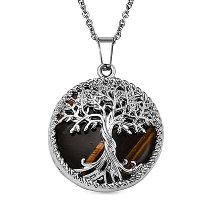 Yellow Tigers Eye Tree of Life Pendant with Chain (Size 20)