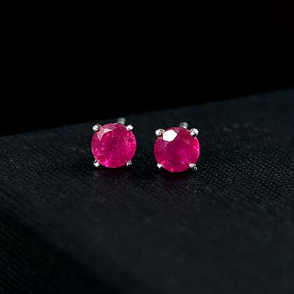 African Ruby Earring in Sterling Silver 1.50 Ct.