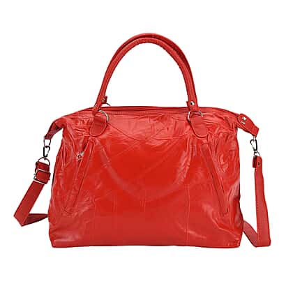 Closeout Deal - Genuine Leather Handbag with Adjustable Shoulder Strap - Red