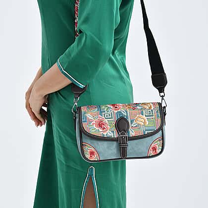 Artful and unapologetically statement-making, this blue crossbody bag is where heritage-inspired detailing meets modern design. Crafted in smooth PU leather, the structured silhouette is elevated with intricate floral thread embroidery. The bag showcases a rich tapestry of colour and texture against the sleek leather base. The interplay feels deliberate and luxurious, striking a perfect balance between bold expression and refined polish.Designed for everyday elegance, the bag features a polyester-lined interior that offers durability while keeping essentials neatly organised. It comes with a top zipper closure and features one zipper pocket at the back to help you store your essentials quickly. Worn crossbody or over the shoulder, this is a piece for women who are confident and unafraid to let their accessories do the talking.