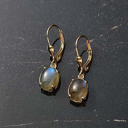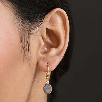 D'Joy Labradorite Earring in Yellow Gold Plated Sterling Silver 3.83 Ct.